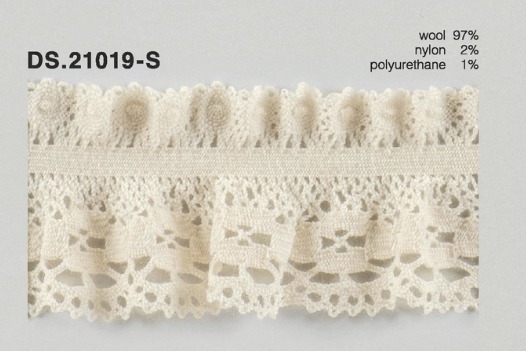 〇風合いの柔らかい生成りのストレッチウールレースです。店頭ではなかなか見かけないタイプのレースブレードです。