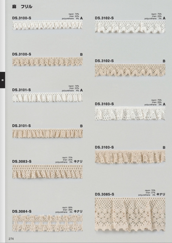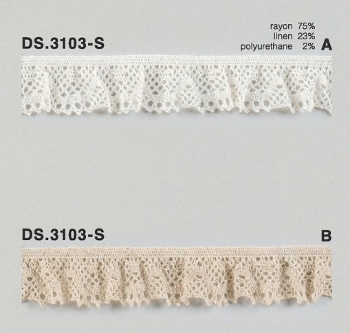 | 製品名: | 麻混レース(レーヨンリネン)ゴム入りフリルレース 1m単位 大定 日本製 DS.3102-S DS.3103-S トーションレース // |