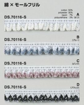 | 製品名: | モールブレード フリルストレッチトーションレース 1m単位 日本製 大定 DS.70116-S DS.70117-S// |