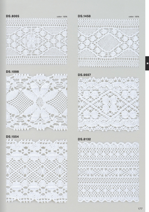 〇シルケット加工済の綿糸を使用したトーションレースで、繊細に編み込んでおります。