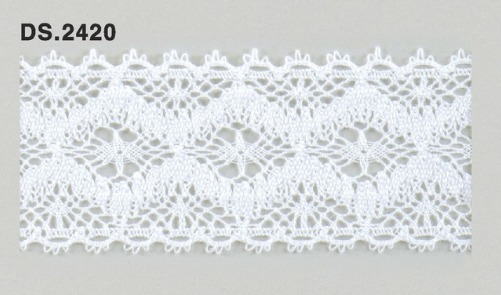 〇シルケット加工済の綿糸を使用したトーションレースで、繊細に編み込んでおります。
