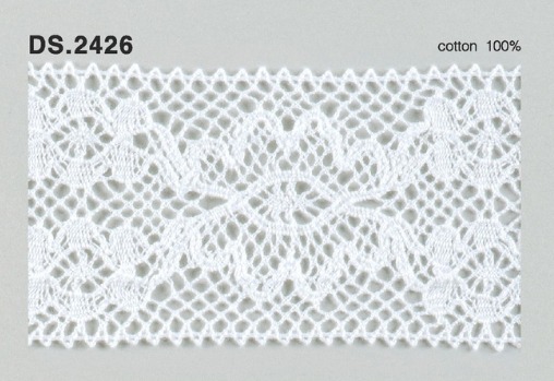 〇シルケット加工済の綿糸を使用したトーションレースで、繊細に編み込んでおります。
