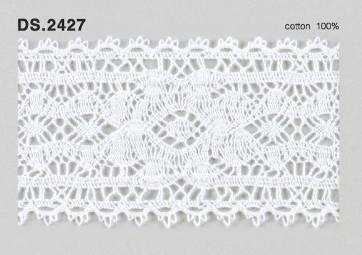 〇シルケット加工済の綿糸を使用したトーションレースで、繊細に編み込んでおります。