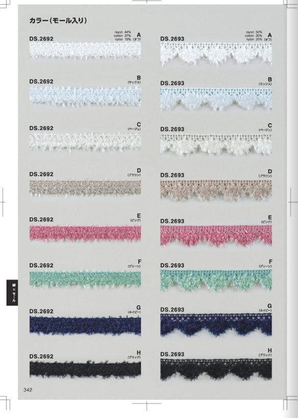 | 製品名: | カラーモールレース ブレード 1m単位 DS.2692 8色展開 12mm幅 大定 日本製 |