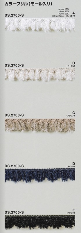 | 製品名: | ストレッチモールレース 1m単位 フリルレース モールブレード DS.2700-S 5色展開 17mm幅 大定 日本製 |