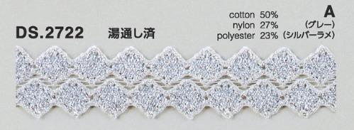 | 製品名: | シルバーラメレース ブレード 1m単位 DS.2722 5色展開 21mm幅 大定 日本製 |