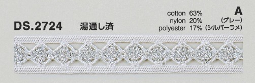 | 製品名: | シルバーラメレース ゴールドラメレース ラメブレード 1m単位 DS.2724 DS.2796 7色展開 16mm幅 大定 日本製 |