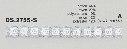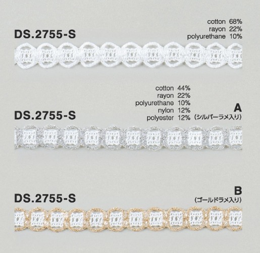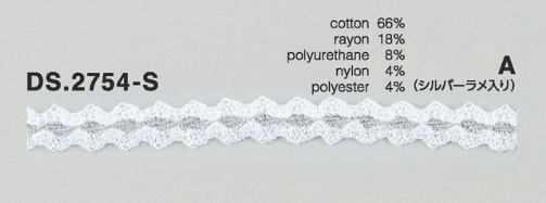 | 製品名: | ゴム入りストレッチレース 綿トーションレース 1m単位 オフホワイト ラメ 大定 日本製 DS.2754-S DS.2755-S /// |