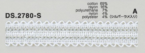 | 製品名: | ゴム入りストレッチレース 綿トーションレース 1m単位 オフホワイト ラメ 大定 日本製 DS.2780-S DS.2781-S /// |