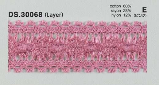 〇軽くて柔らかいカラーモールと綿糸を組み合わせたブレードタイプのレースです。8色展開になっておりますので、お好みの色をお選びください。
