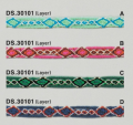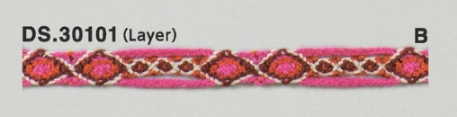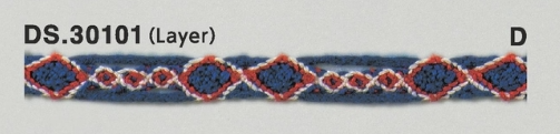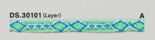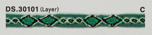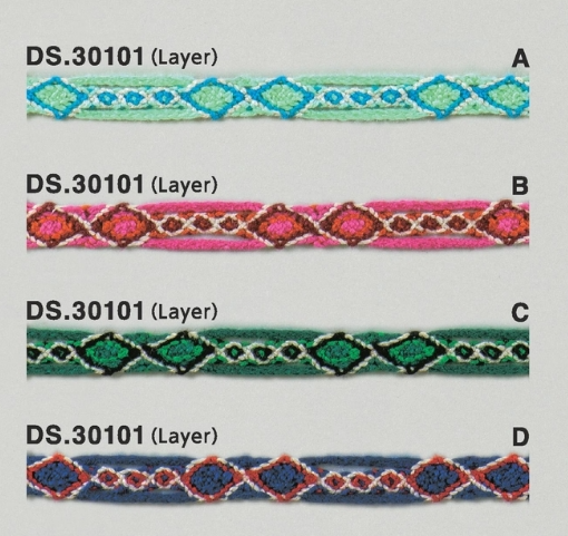 〇柔らかい先染め糸を使用して、カラフルなデザインに仕上げて編み込んだレーステープです。