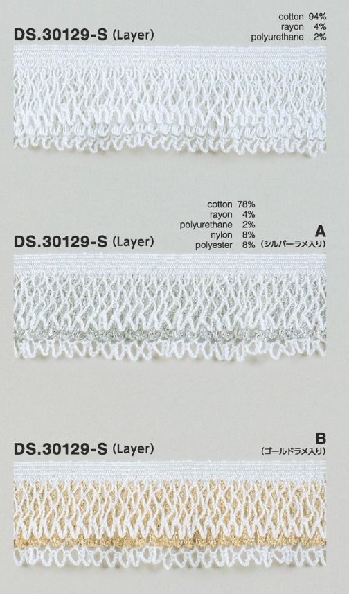 | 製品名: | レイヤーフリルレース ゴム入りトーションレース 1m単位 オフホワイト ポリエステルカラー ラメ 大定 日本製 DS.30129-S DS.30217-S//// |