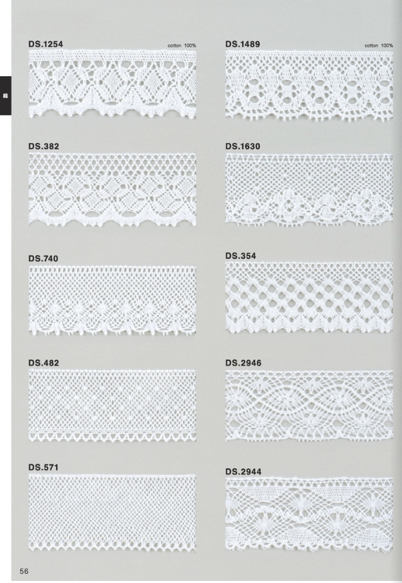 〇シルケット加工済の綿糸を使用したトーションレースで、繊細に編み込んでおります。