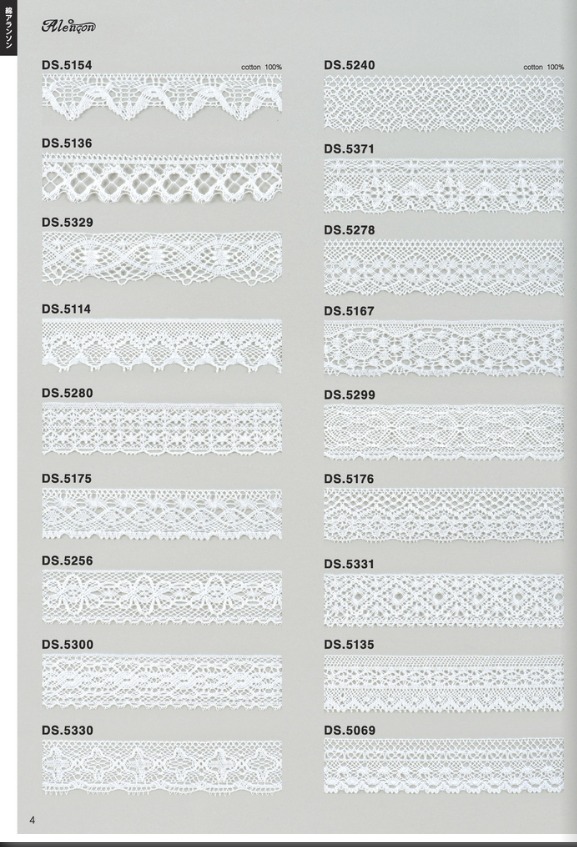 〇綿素材、極細番手糸使用、高品質レースの作成は当店が得意としております。