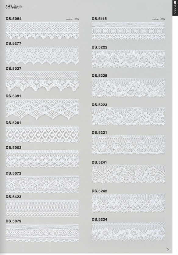 〇極細番手の綿糸を使った薄手のトーションレースで、薄く、軽く、繊細に編み込んでおります。