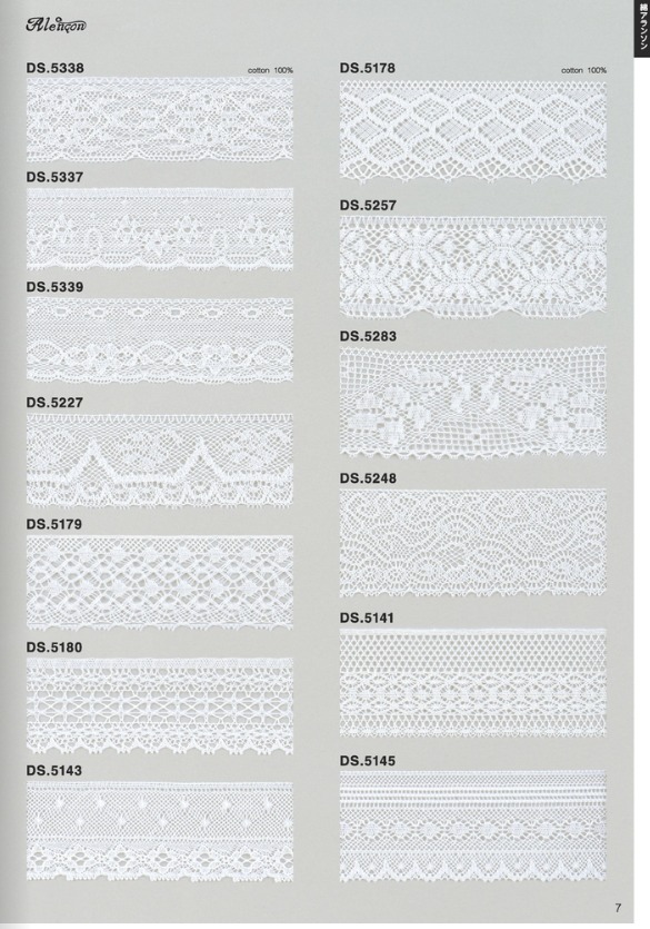 〇極細番手の綿糸を使った薄手のトーションレースで、薄く、軽く、繊細に編み込んでおります。