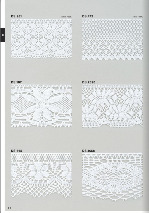 〇シルケット加工済の綿糸を使ったトーションレースで、繊細に編み込んでおります。