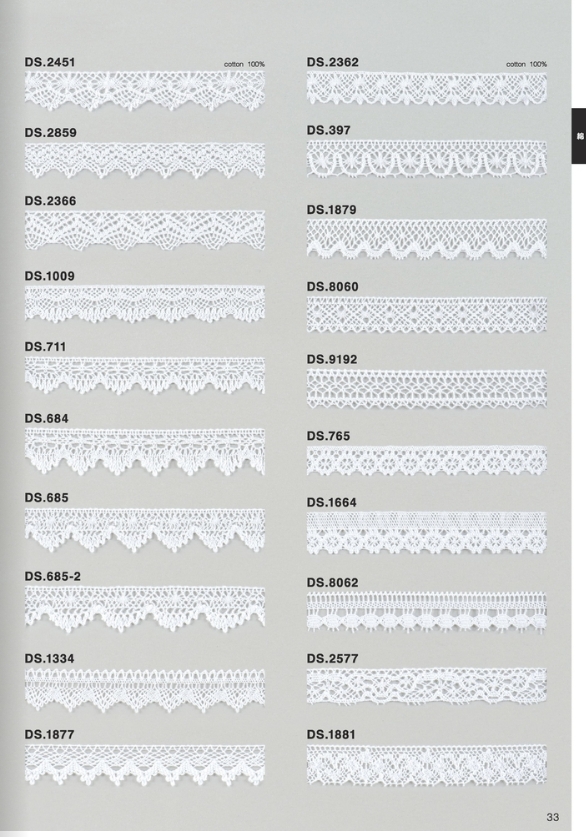 〇細番手の綿糸を使った薄手のトーションレースで、薄く、軽く、繊細に編み込んでおります。