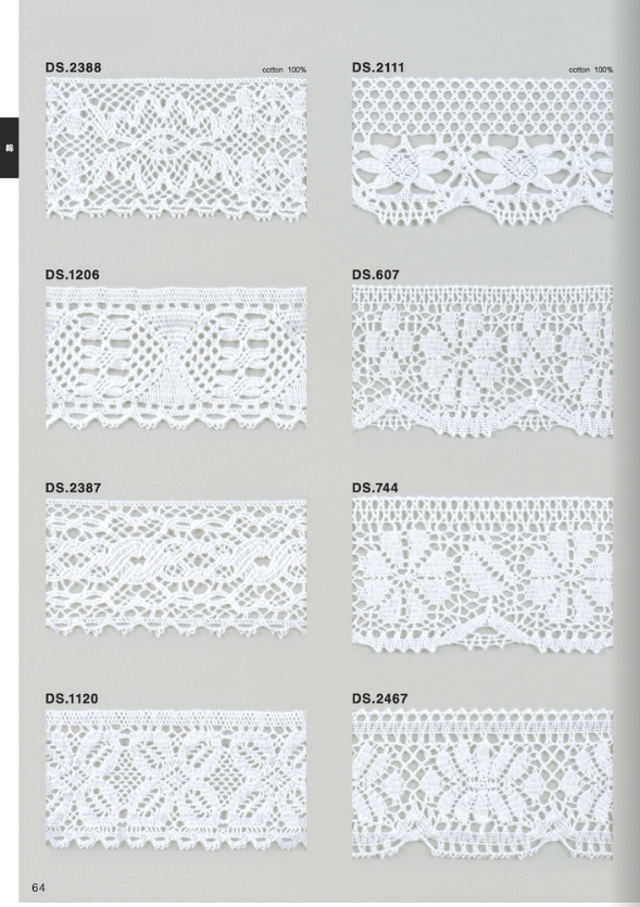 〇シルケット加工済の綿糸を使用したトーションレースで、繊細に編み込んでおります。