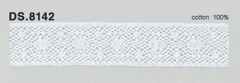 〇細番手の綿糸を使った薄手のトーションレースで、薄く、軽く、繊細に編み込んでおります。